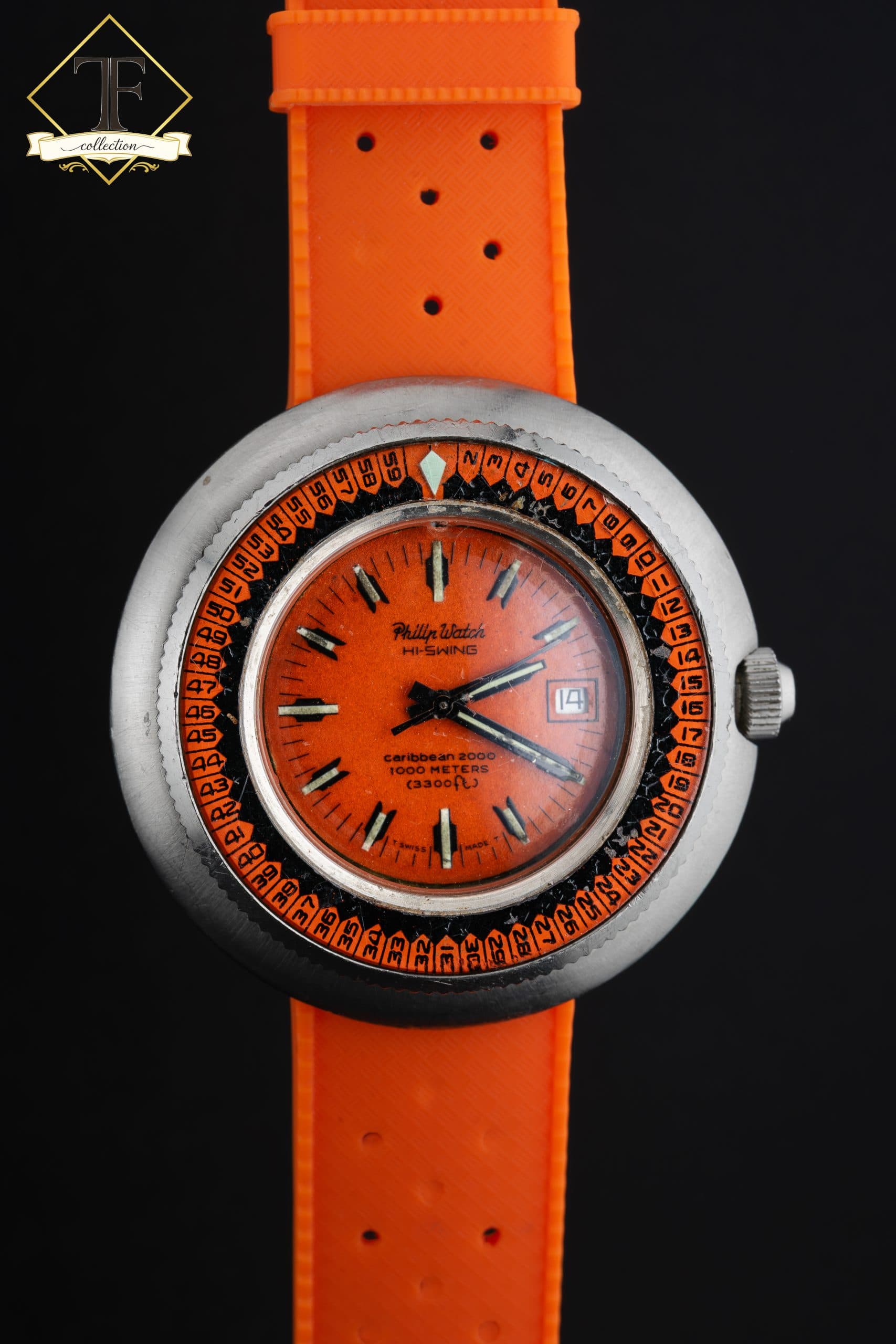 Philip Watch Caribbean 2000 “Hi-Swing” – 1000 metri – Quadrante Arancione – Lunetta Calendario