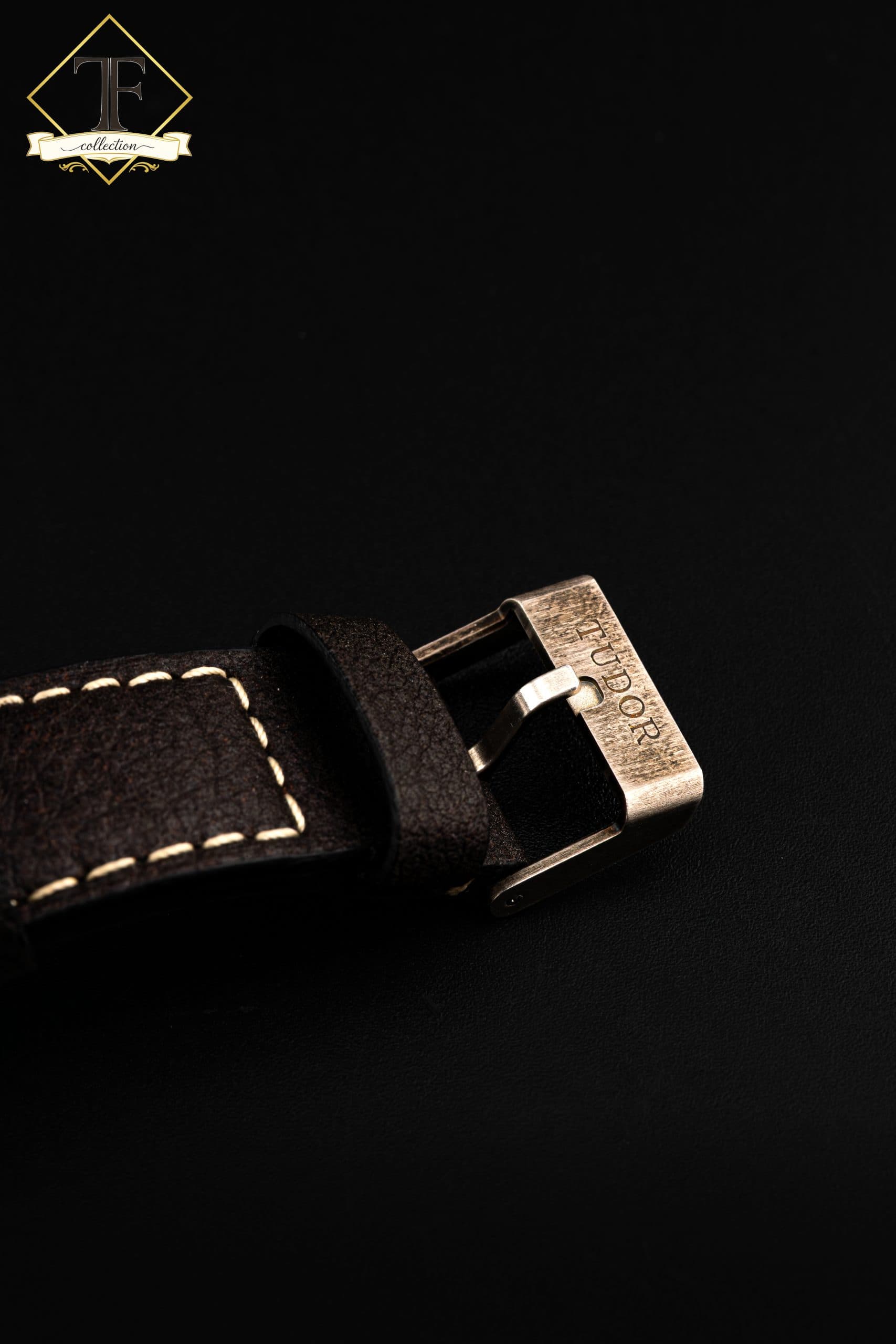 Il cinturino montato sull’orologio è in ottime condizioni, così come la fibbia firmata Tudor. Essendo corredato di due cinturini e presentato come full set, l’insieme risulta particolarmente completo e interessante anche sotto il profilo collezionistico e commerciale.
